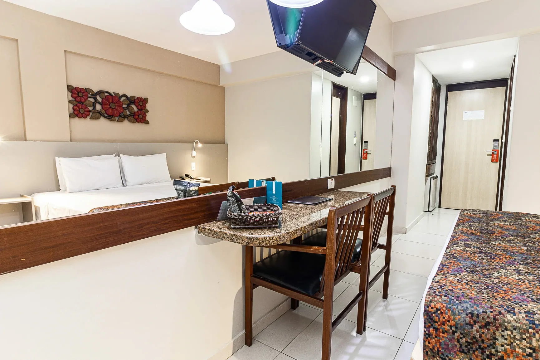 Contamos com diversos tipos de quartos para atender todos os públicos. Desde quartos mais simples, para uma estadia mais rápida e voltada para pernoite, como também quartos duplos e triplos. Oferecemos uma estadia voltada para família, grupos e até casais em lua de mel.